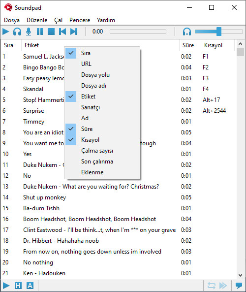 Her ses dosyası için kısayol tuşları ayarlayın ve oyun esnasında hızlı bir şekilde çalın.